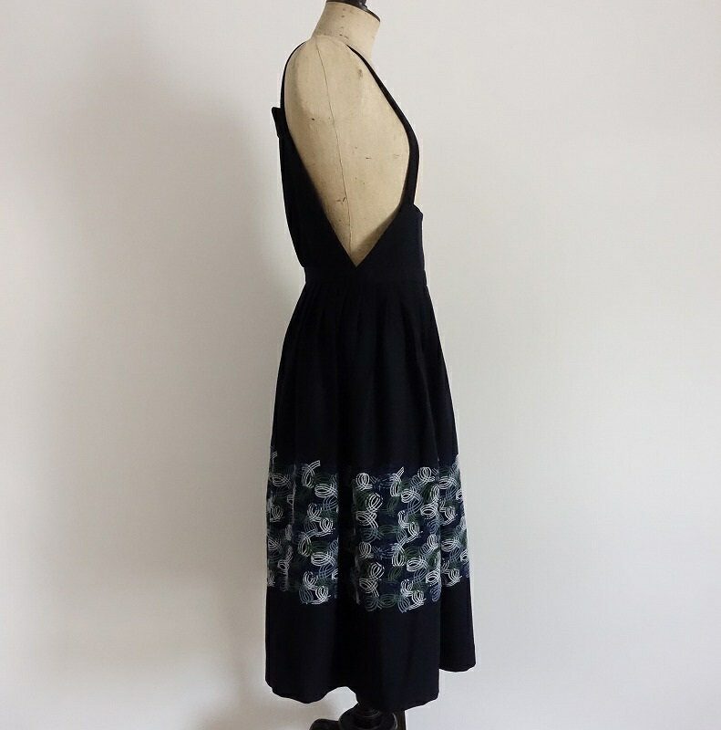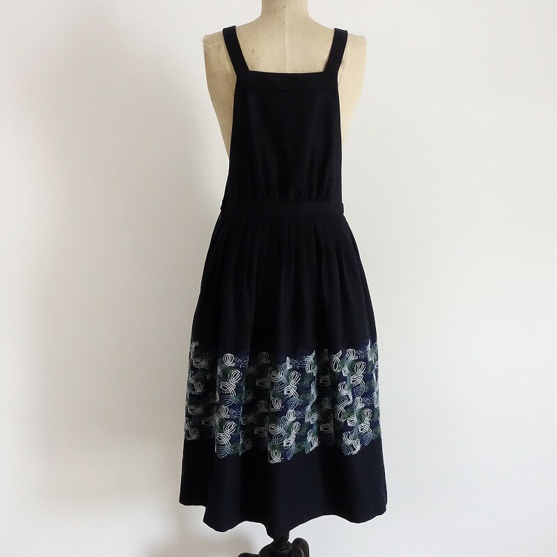 表記サイズ:38 実寸サイズ:着丈(前身頃)84cm, ウエスト幅40cm, ヒップ幅59cm (多少の誤差はご了承ください) 素材:ウール99%,ポリウレタン1% 刺繍-コットン100% 裏地-キュプラ100% デザイン:mina perhonenのribbon breeze ジャンパースカートです。