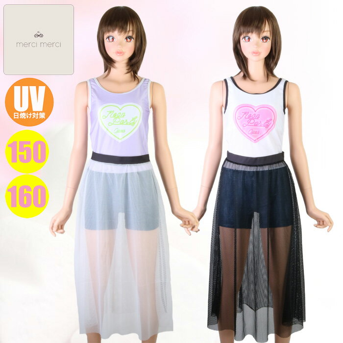 【あす楽】(パケット便送料無料)merci merci ガールズ水着 メッシュスカート付きワンピース カップ付き UVカット 1101