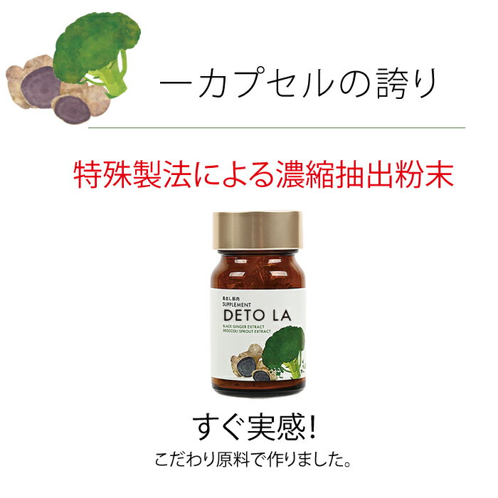 【サプリ】デトラ 30カプセル入り ブロッコリースプラウト スルフォラファン 黒ショウガ 黒ウコン amity アミティ リピーター続出